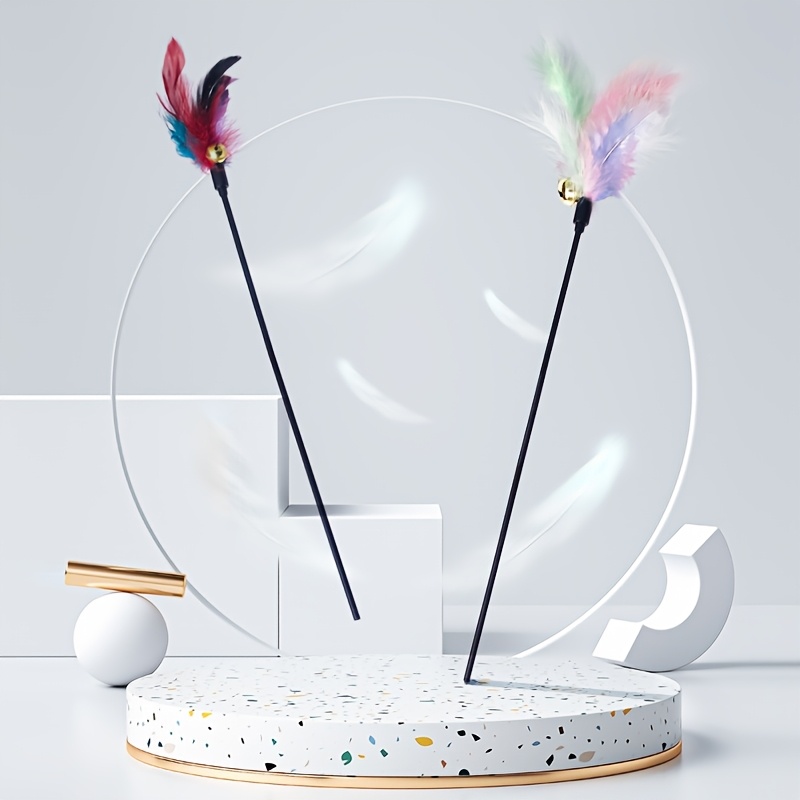 1/2 bucăți Jucărie Interactivă pentru Pisici cu Pene Colorate – Băț de Plastic pentru Pisici de Interior, Băț de Vânătoare pentru Exerciții pentru Pisici de Diferite Rase, Stimulator cu Pene pentru Stimulare și Antrenament