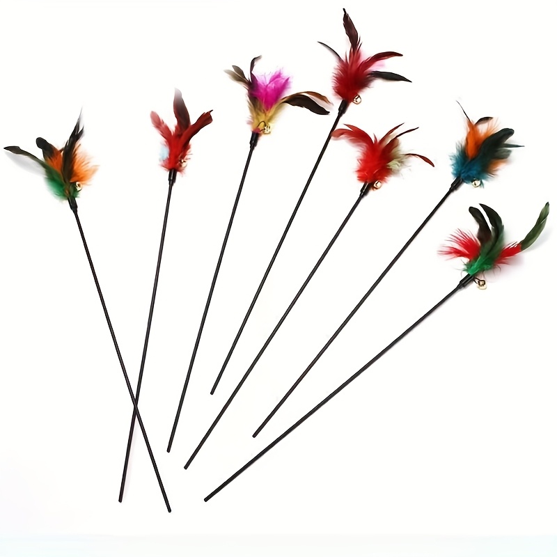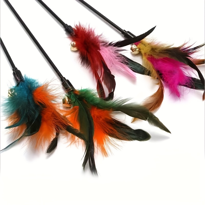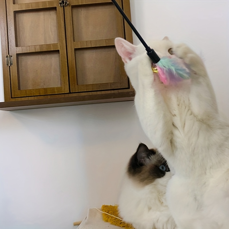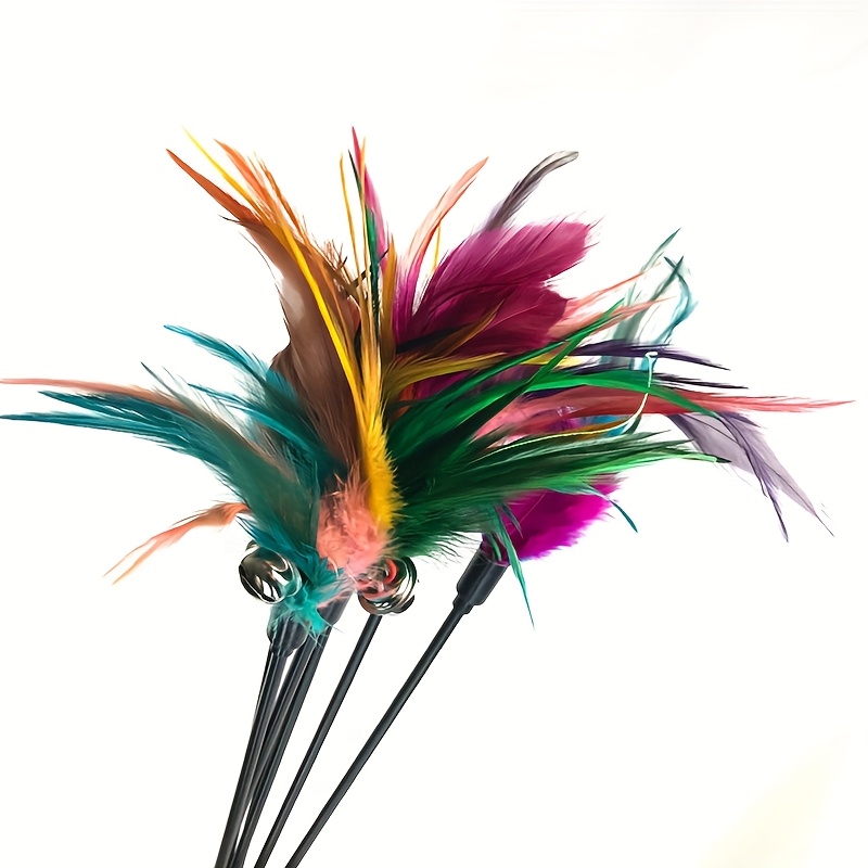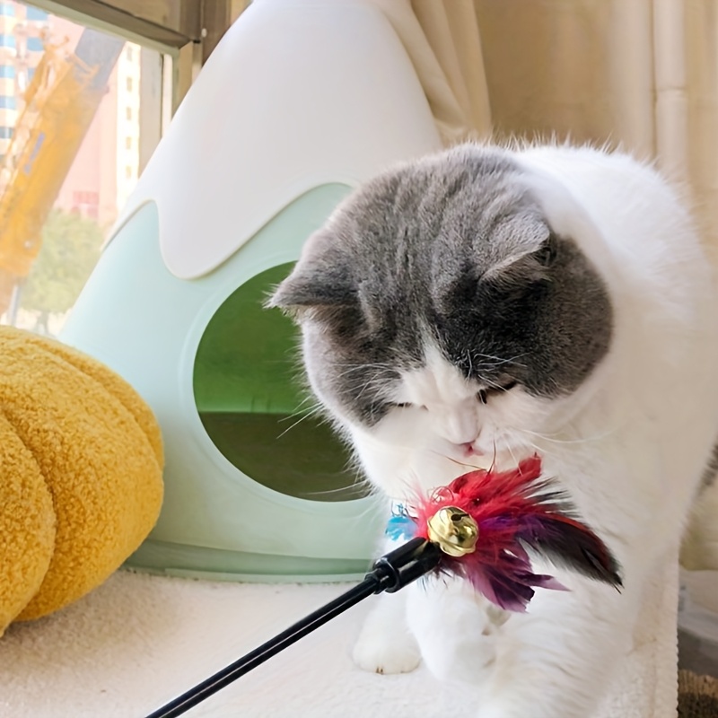 Jucărie Durabilă pentru Pisici din Plastic cu Pene Realiste și Clopoțel – Băț Interactiv pentru Toate Rasele/Tipurile de Pisici, pentru Pisoi și Pisici, Joc în Aer Liber, Accesoriu de Stimulare pentru Vânătoare