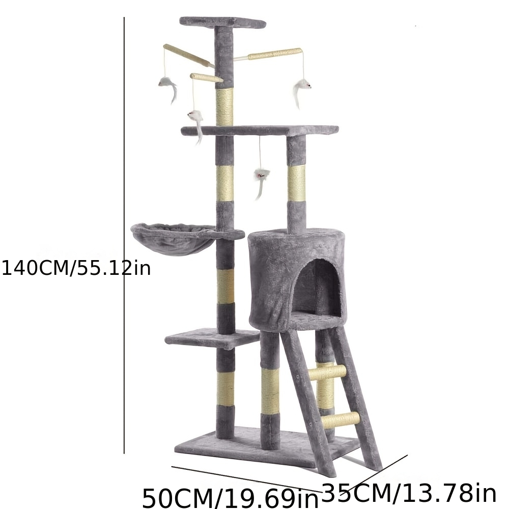 140cm Turn pentru Pisici cu Scară, Turn de Cățărat pentru Pisici, Mobilier de Activitate pentru Animale de Companie, Casă de Joacă, Pat Pufoasă Detașabilă, Gri