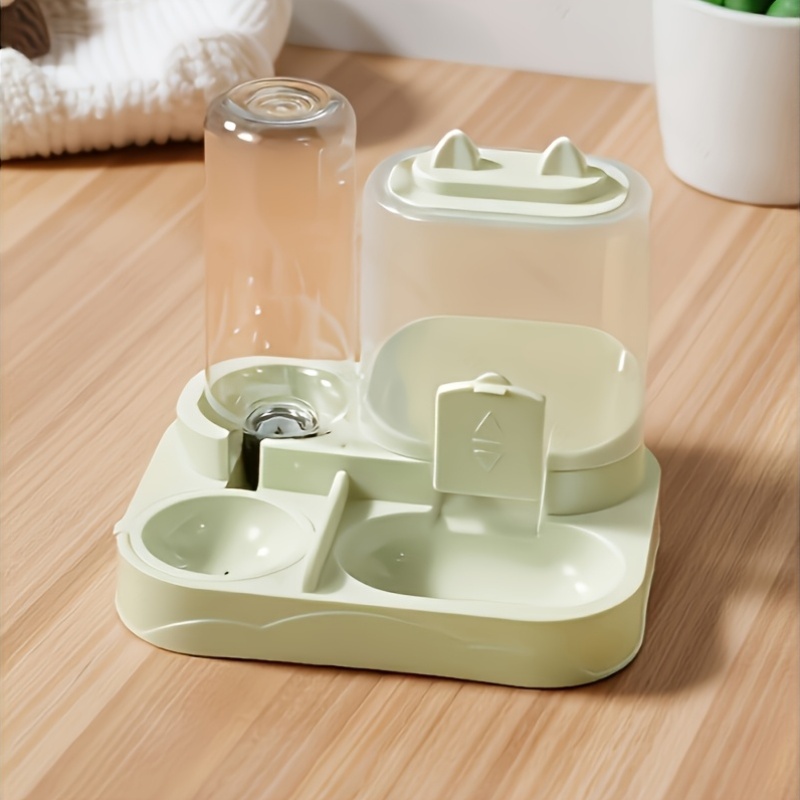 Distribuitor automat 2-în-1 pentru hrană și apă, capacitate mare, pentru pisici și câini | Separare uscată și umedă, plastic durabil, design transparent, ideal pentru hidratare în interior și dietă sănătoasă, funcționare fără baterii
