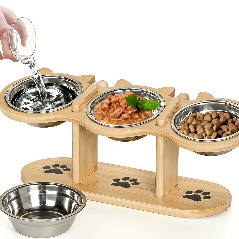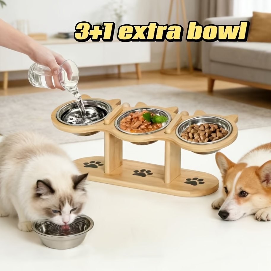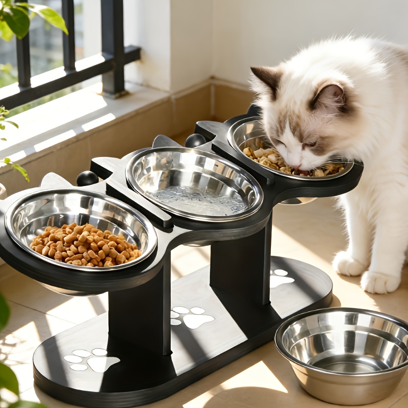 Set de Boluri pentru Pisici Ridicate cu 4 Boluri din Oțel Inoxidabil – Bol Inoxidabil Înclinat la 15°, Înălțime Reglabilă cu Suport Negru, Cadou Ideal pentru Proprietarii de Animale de Companie