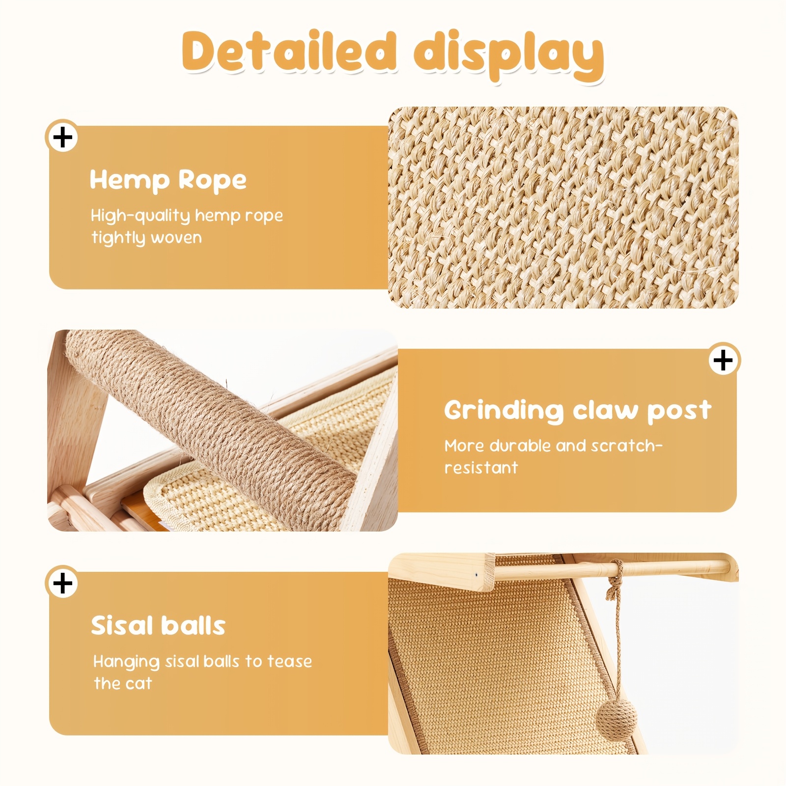 Turn pentru pisici de 140 cm înălțime, cu mai multe niveluri, stâlpi de zgâriat din sisal, cadru mare de cățărat, scară, hamac și casă – Mobilier robust pentru interior, pentru pisoi și pisici, turn alb/maro pentru cățărat, odihnă și joacă